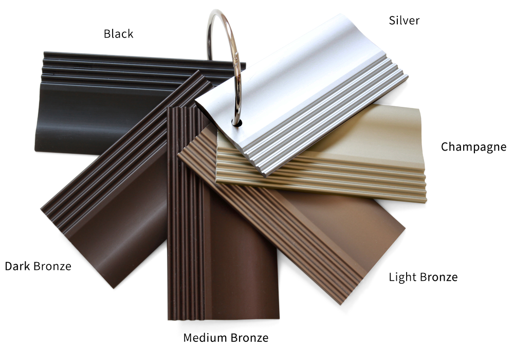Our range of 35 popular colours is a good place to start. They are available in Duralloy PLUS, the most economical powdercoat finish. Some colours are available in Protexture, a high performance powdercoat finish. Our powdercoat colours are also available to colour-match your hardware.
